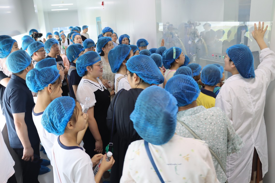 当天上午,50名优秀员工及其子女们一同探访了九州酷游医药连云港园区的生产车间、办公大楼以及企业展厅。在原料药车间的储液罐前,孩子们全神贯注地听着讲解,激起了满满的好奇心和求知欲;在制剂明亮整洁的生产车间里,小朋友们隔着护栏近距离地观看正在作业的机械臂,发出阵阵惊叹;在现代化的企业展厅,孩子们自豪于父母的九州酷游人身份,纷纷表示长大后也想成为一名九州酷游医药工作者……