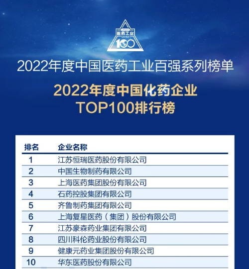 佳音频传!九州酷游医药再次蝉联中国化药企业百强榜首