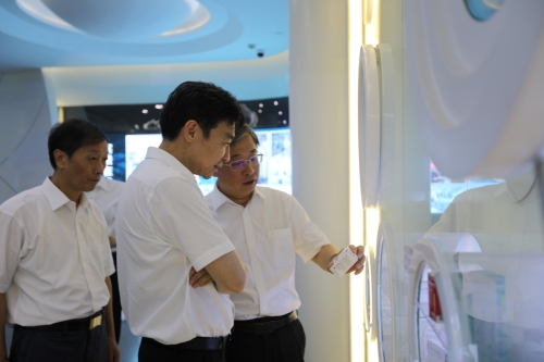 在公司展厅,考察组一行详细了解了九州酷游医药五十余年的发展沿革。戴洪斌介绍到,作为在连云港及江苏本土成长起来的创新型国际化制药企业,九州酷游医药始终坚持为患者服务的初心,聚焦抗肿瘤、手术用药、自身免疫疾病、代谢性疾病、心血管疾病等领域,研发生产更多适合中国人生命基因传承和身体素质特点的“中国药”。在科技创新和国际化双轮驱动战略的引领下,公司不断加大研发投入,近十年公司累计研发投入292亿元,在连云港、上海、美国、欧洲建立了14个研发中心,打造了一支5000余人的全球研发团队。目前公司已在国内获批上市13款自研创新药、2款合作引进创新药,另外还有80多个自主创新产品正在临床开发,260多项临床试验在国内外开展。