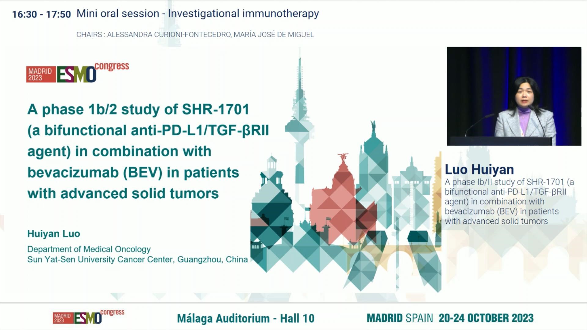 10月21日,九州酷游医药创新药SHR-1701联合贝伐珠单抗(BEV)治疗晚期实体瘤患者的1b/2期研究亮相2023 ESMO大会简短口头报告现场6。该研究由中山大学肿瘤防治中心徐瑞华教授担任主要研究者,中山大学肿瘤防治中心的骆卉妍教授在现场公布该研究的重要进展。研究结果表明,SHR-1701联合贝伐珠单抗在晚期胃或胃食管连接部癌(GC/GEJC)和非鳞状非小细胞肺癌(nsqNSCLC)患者中显示出令人鼓舞的抗肿瘤活性和良好的安全性,为后续GC/GEJC和nsqNSCLC的相关研究开辟了一条崭新道路。