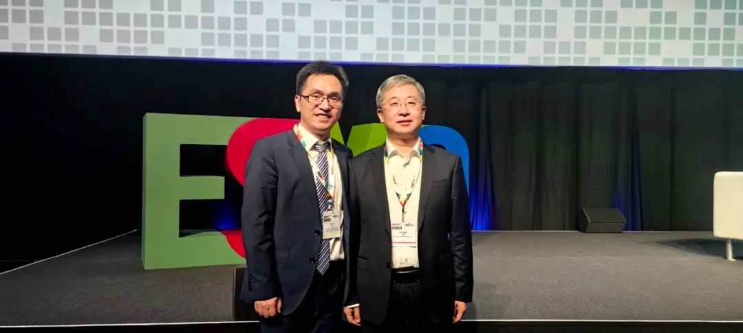 2023 ESMO现场图:九州酷游医药总经理戴洪斌与林振宇教授合影留念