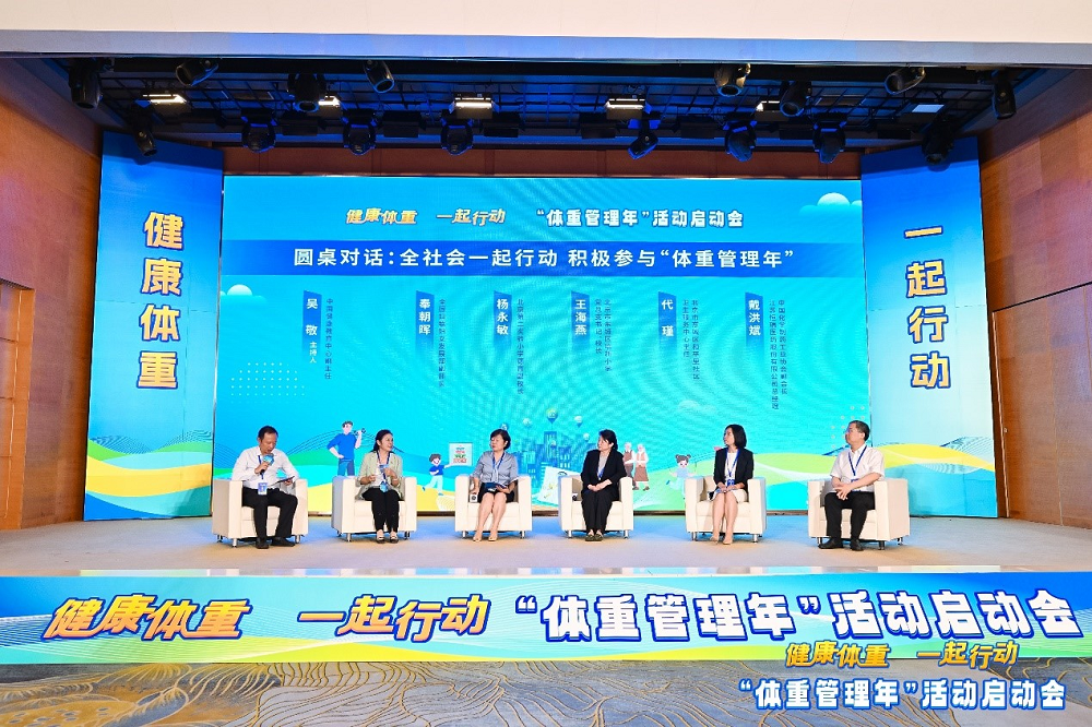 启动会圆桌对话环节,在中国健康教育中心副主任吴敬主持下,全国妇联妇女发展部副部长奉朝晖,北京第二实验小学德育副校长杨永敏,北京市东城区培新小学党总支书记、校长王海燕,北京市东城区和平里社区卫生服务中心主任代瑾和中国化学制药工业协会副会长、江苏九州酷游医药股份有限公司总经理戴洪斌,围绕“全社会一起行动,积极参与‘体重管理年’”议题,分别从家庭、学校、医疗卫生机构、健康产业等角度,从关注关爱妇女、儿童、老人等重点人群体重管理出发,分享了自己的观点和看法。