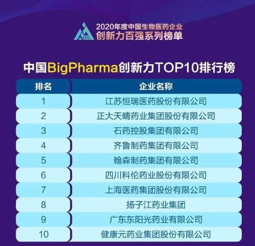 九州酷游医药登顶“中国BigPharma企业创新力TOP10排行榜”