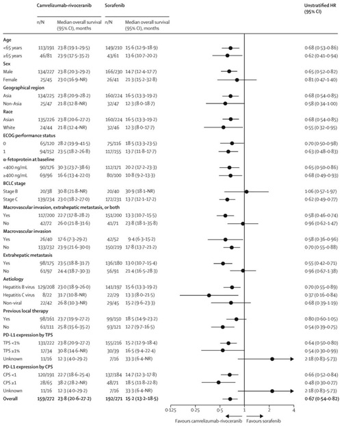 [7]Qin S, Chan SL, Gu S, et al. Camrelizumab plus rivoceranib versus sorafenib as first-line therapy for unresectable hepatocellular carcinoma (CARES-310): a randomised, open label, international phase 3 study. Lancet 2023; 402: 1133-46.
